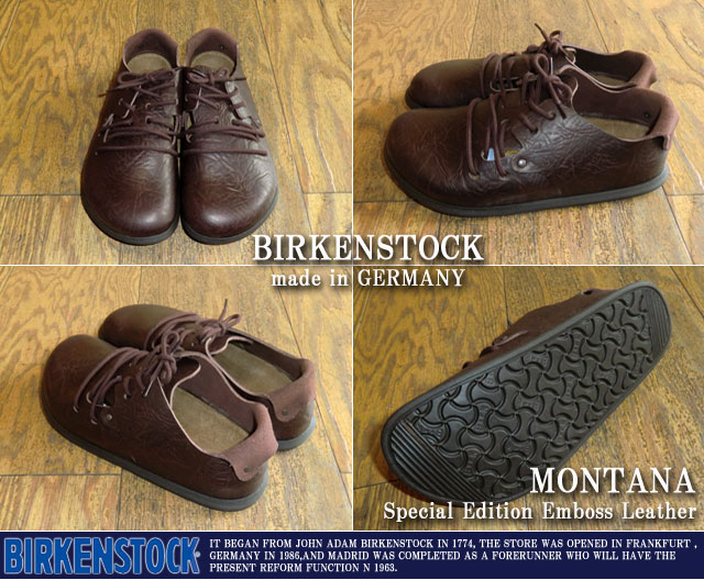 ビルケンシュトックジャパンの中から“SPECIAL EDITION”と呼ばれる日本別注ラインです。 定番モデルのモンタナですが、全体にエンボス加工がされています。ネイティブなファッションにも合わせやすいモデルに尚、らしさが加わっています。ノーマル幅。