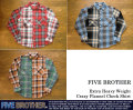 ファイブブラザーといえば多くの種類を出しているネルシャツで有名すが、その中でも1番ヘビーウエイトなネルシャツがこのモデルになります。すっかり定番となりました。今季は6色展開なのですが、それをそれぞれクレイジーパターンにしてしまった3色展開となります。重厚感は勿論、長年の使用にも耐えられる生地と縫製により、長く愛用できる1着となりそうです。右のポケットをフラップポケットに、左のポケットをペンさしポケットにする事で遊び心と、機能性を両立させています。