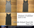 夏の定番“ミラー”のタンクトップです。 従来のタンクトップと比べ、胸周り、袖周りの空きが少なく、肩ラインが太いモデルです。ラメ素材を配した珍しい柄です。 173cm62kgでMサイズを着用